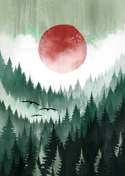 Art Print "Red Forest" von Roman Rögner. Erhältlich in verschiedenen Größen als Poster oder gerahmter Fine-Art-Print. Zusammen mit einem Rahmen wird dieses Kunstwerk in deiner eigenen, persönlichen Kunstgalerie wirklich herausstechen!