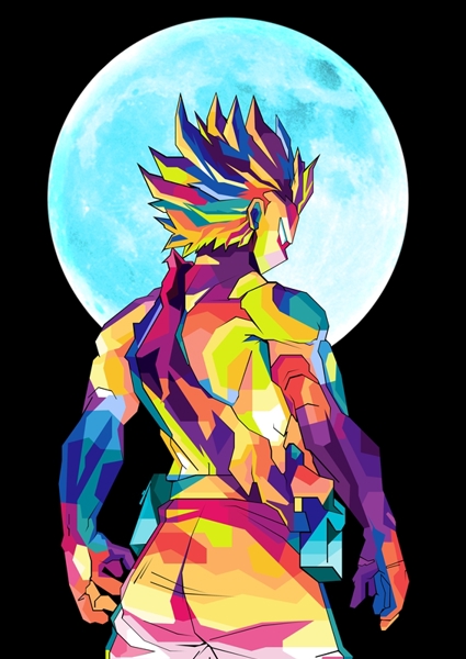 "Izuku Midoriya Pop Art" Poster von Maftuhi. Dieses Kunstwerk katapultiert dich direkt in eine bunte Superheldenwelt – Izuku Midoriya in knalligen WPAP-Pop-Art-Farben, die fast schon explodieren. Der strahlend blaue Vollmond im Hintergrund setzt das Ganze noch mal richtig in Szene, als würde er sagen: „Hier kommt jemand, der die Nacht rockt.“ Geometrisch, wild und doch irgendwie harmonisch – perfekt für alle, die Anime lieben und den Helden in sich spüren. Wer braucht schon Schwarz-Weiß, wenn’s auch knallig geht?