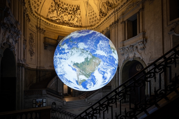 "Nobel-Lampen" Poster von Tomas Kullström. Diese schwebende Erdkugel im prunkvollen Treppenhaus des Königlichen Schlosses in Stockholm bringt den Kosmos direkt ins Alte Stadtzentrum. Blau und Grün leuchten gegen die barocken Details an – fast so, als würde die Welt hier kurz innehalten. Licht und Schatten spielen miteinander, als wollten sie dich zum Nachdenken über deinen Platz im Universum einladen. Kunst, die mehr kann als nur hübsch aussehen – und dabei ganz schön nobel wirkt.