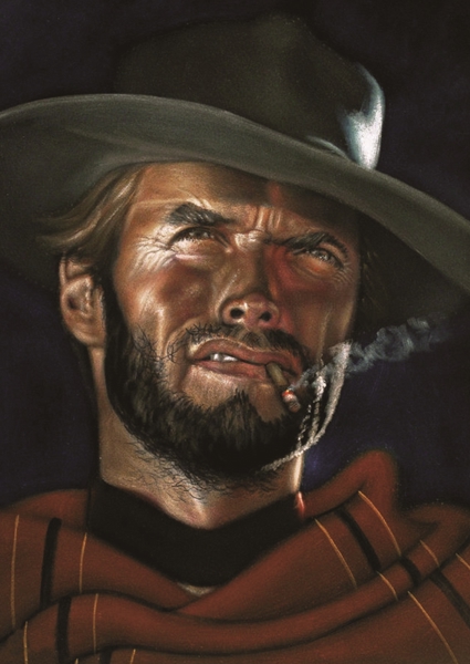 "Clint Eastwood" Poster von Clint Wonder. Ein rauchverhangener Blick, der Geschichten von staubigen Western und verlorenen Duellen erzählt. Dieses Porträt fängt die kantige Aura eines echten Originals ein – mit zerfurchter Stirn, markantem Bart und dem typischen Cowboyhut. Die Zigarette, aus der der Rauch langsam aufsteigt, bringt diesen Hauch von Rebellion und Vintage-Charme perfekt auf den Punkt. Ein Statement für alle, die Rock, Blues und Retro lieben – und den Mythos dahinter spüren wollen.