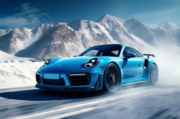 "Porsche 911 Blue on Ice Track" Poster von Remigius Wloczkowski.