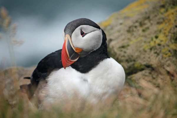 "This photo was taken at Latrabjarg bird cliffs in the Westfjords of Iceland. After a long, sometimes overwhelming drive in the steep landscape, we saw this beauty standing outside its nest at the edge of the cliffs."