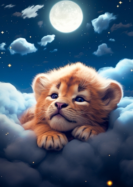 "At the request of my children, this cute motif was created and several more with cute baby animals in the clouds."