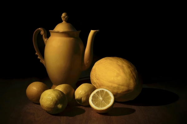 "My favourite teapot in a lovely yellow color inspired me to make this still life. It’s a perfect color for my kitchen wall."