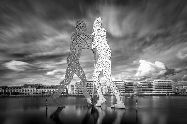 "Photo of the sculpture "Molecule Man" at Treptower Hafen in Berlin"