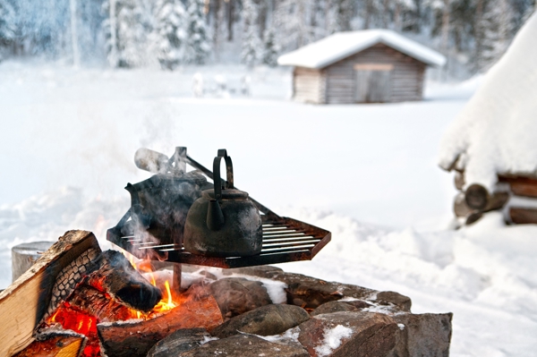 "A really cold winter's day in northern Sweden. We made coffee over an open fire, in the background there is a barn."