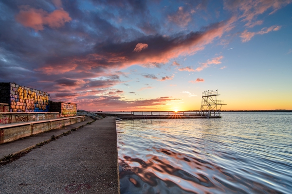 "Saltö" Poster von Dennis Törnström. Der Badebereich Saltö bietet eine Show