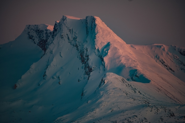 "Was out backcountryskiing in Northern Norway with a friend. The sunset was magical and gave a special light over a majestetic mountain in the horizon. "