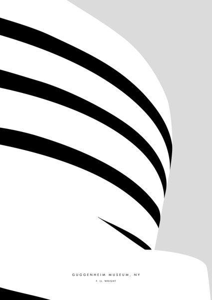 "This minimalist artwork captures the iconic curves of the Guggenheim Museum, celebrating architectural elegance and modern design. Ideal for contemporary interiors, it adds sophistication to living rooms or offices, blending seamlessly with industrial or Scandinavian decor trends."