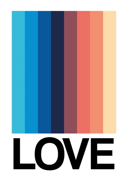 "Bunte Liebeskunst" Poster von Frances Collett. Knallige Farben, die sich wie ein Regenbogen der guten Laune aneinanderreihen – von kühlem Blau bis zu warmem Korall. Dazwischen steht das Wort „LOVE“ in fetten, schwarzen Lettern, die laut und klar sagen: Hier geht’s um mehr als nur Deko. Minimalismus trifft auf Statement, als ob das Bild selbst flüstert: Liebe ist bunt und darf ruhig mal laut sein. Perfekt, wenn du deinem Raum ein bisschen Haltung und Farbe verpassen willst.