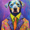 "This suave feline redefines elegance with a vibrant suit and a sharp tie. A bold fusion of color and charm, perfect for those who appreciate quirky sophistication and artistic flair."