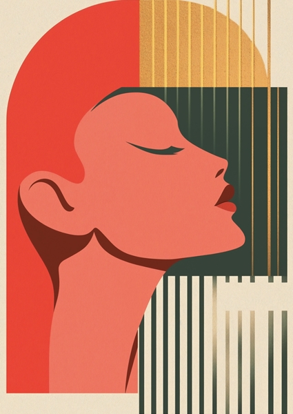 "Retrometrisch - Aphrodite II" Poster von Philippe HUGONNARD. Ein Gesicht, das so entspannt wirkt, als hätte es gerade den perfekten 70er-Jahre-Vibe eingefangen – geometrisch, klar und doch irgendwie weich. Die Linien spielen ein minimalistisches Spiel mit Farbe und Form, das alte Retro-Ästhetik trifft auf modernes Design. Diese stylische Silhouette bringt genau diese Balance aus Nostalgie und Zukunft ins Zimmer – irgendwie wie eine Zeitreise mit Stil, die du dir einfach an die Wand hängen willst. Klar, das ist kein Standard-Porträt, sondern ein Statement.