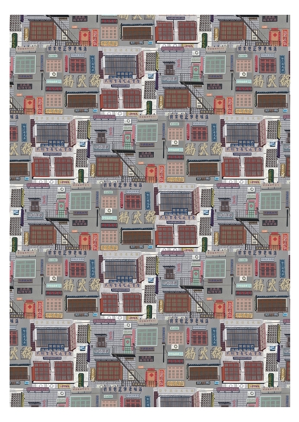 "This artwork features a detailed, repeating pattern of urban architecture, showcasing intricate city building facades, doors, and windows. Perfect for designs emphasizing metropolitan themes, cityscapes, and architectural motifs."