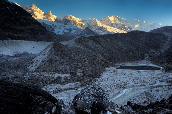 "Kangchendzönga" Poster von Johannes Glännman. Kangchenjunga zeigt sich hier im kalten Morgengrauen – du spürst förmlich die -10 Grad und die kristallklare Luft aus Sikkim, Indien. Die schroffen, eisgekrönten Gipfel leuchten gegen den tiefblauen Himmel, während der frostige Boden fast unwirklich wirkt. Dieses Bild fängt die wilde, raue Schönheit des Himalayas ein und macht Lust auf Abenteuer fernab vom Alltagstrubel. Ein echtes Highlight für alle, die das Majestätische lieben.