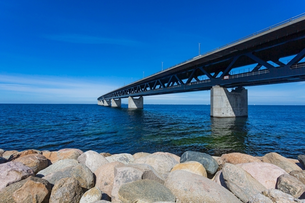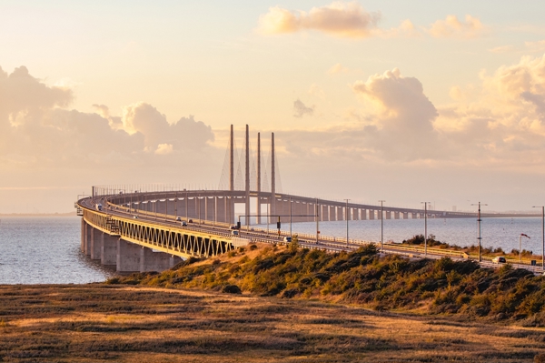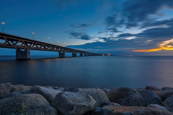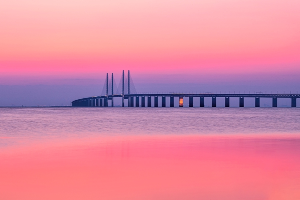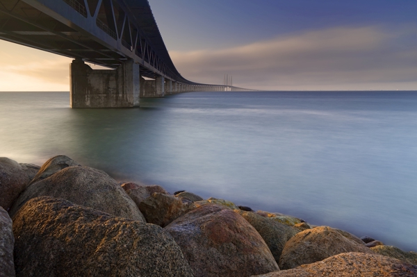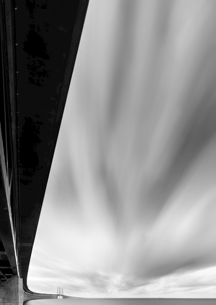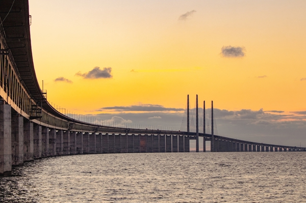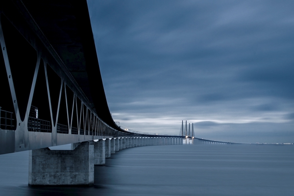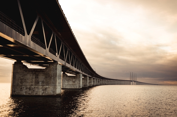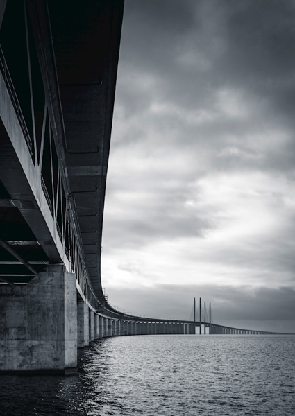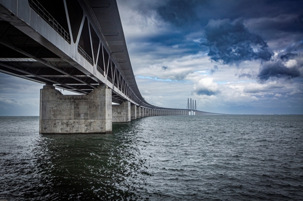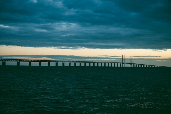 "he Öresund Bridge between Sweden and Denmark, one cloudy day, but the sun managed to get through the clouds from time to time."