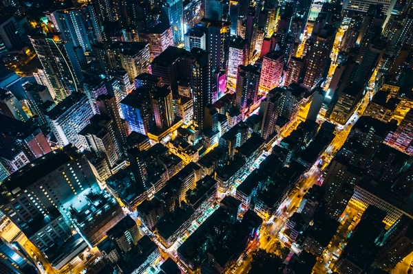 "Night View from Victoria Peak with the Skyscrapers of Hong Kong Island and the Lights of Kowloon"