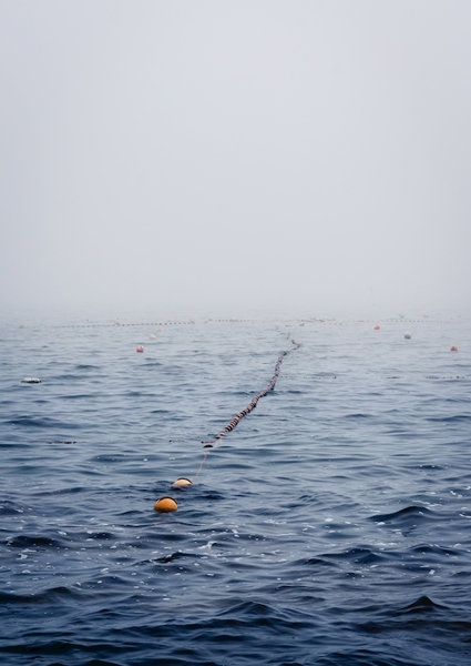 "V šeru" poster od Nikola Kördel. Poklidná hladina moře se rozplývá v mlze, která halí horizont do nevýrazné šedi. Minimalistické pojetí zobrazuje čáru bójek, jako by vedla někam do neznáma – přesně ten moment, kdy je všechno zahaleno tajemstvím a zároveň nečekaně klidné. Letní ráno v Österlen, kde se voda a vzduch spojují v tichou harmonii. Pro milovníky jednoduché krásy a atmosféry, která vás nechá v klidu přemýšlet, co je za tou mlhou.