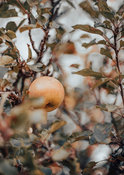 "Podzimní jablka" poster od Marika Ottosson. Jeden osamělý jablko visí mezi větvemi, obklopený rozmazanou hrou listů a podzimních tónů. Tenhle moment, kdy příroda zpomalí a všechno kolem šeptá „tohle je ten čas“, má něco nečekaně uklidňujícího. Barvy nejsou křiklavé, spíš takové jemné, jako kdyby svět zrovna vyměnil filtr za nostalgii. Ideální kousek na stěnu, který přinese kousek zahrady přímo k vám domů.