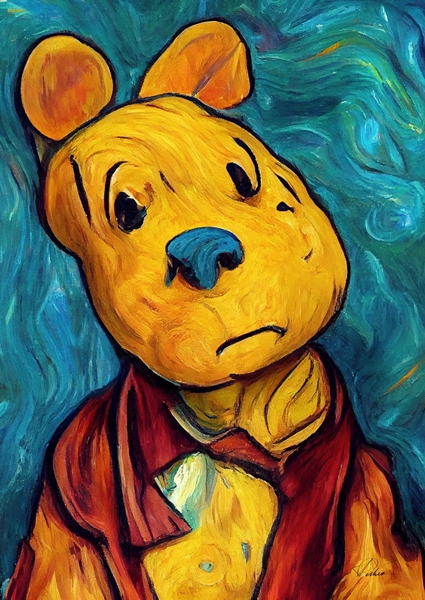 "A portrait of the world famous Winnie the Pooh in the style of the legendary painter Van Gogh."