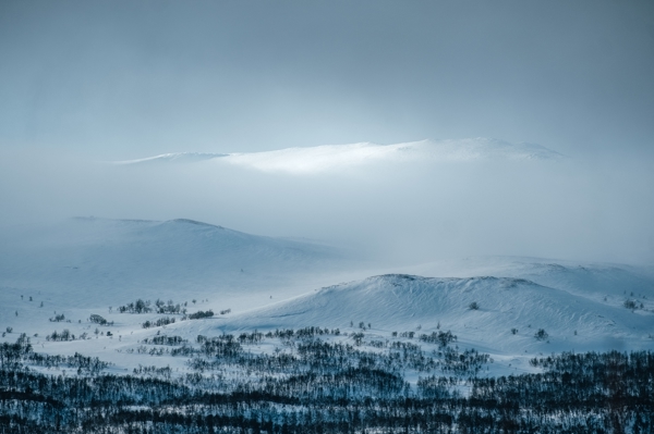 "Hora se vznáší v oblacích" poster od Oskar Karlin. Zasněžené Vättafjället se vznáší nad krajinou jako tajemný, mlhou zahalený obr. Ticho, co tu panuje, je skoro hmatatelné. Les pod ním spí, schovaný pod bílou pokrývkou, zatímco vrcholky hor se prodírají skrz mraky jako duchové z jiné dimenze. Taková scenérie, která ti připomene, že příroda umí být klidná, ale zároveň neuvěřitelně silná. Ideální kousek divočiny přímo na stěnu.
