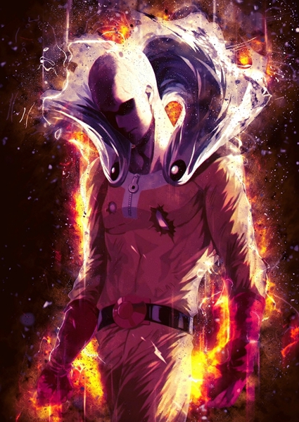 "Saitama jednoho ranaře" poster od Syarif syarif. Saitama z One Punch Man se tu předvádí v plné parádě – klidný, ale nebezpečný, s výrazem, který říká „jo, zvládnu to jedním úderem“. Oheň kolem něj a dynamické světlo dávají celé scéně pořádnou dávku energie a napětí. Je to jako vidět hrdinu, který je tak silný, že už ani nemusí bojovat, a přesto je připravený. Perfektní kousek pro fanoušky anime a manga, co mají rádi pořádnou dávku stylu a síly.