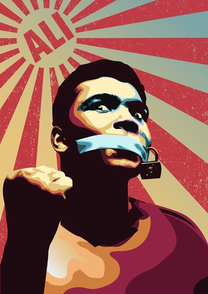 "muhammad ali illustration of legendary people pop art style concept design artwork."