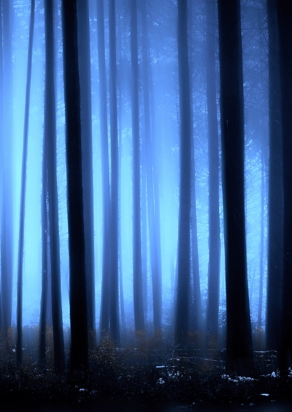 "Magical light in the misty forest, only the fairies and trolls are missing."
