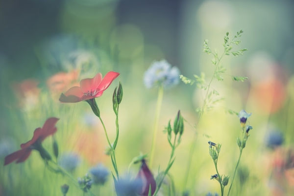 "Květy" poster od Marie Rich. Vystupuje z jemného chaosu louky jeden ostrý červený květ, který s lehkostí tančí ve větru. Okolo něj se rozplývá světlo v měkkém bokehu – taková ta magická mlha, co okamžik změní na sen. Barvy modré, zelené a červené tady dohromady mluví jazykem přírody, který zná každý, kdo někdy bloudil Freiburgem. Víc než jen fotografie – tohle je momentka, co přenese kousek venkova přímo na zeď. Ale tak… kdo by nechtěl mít trochu téhle pohody doma?