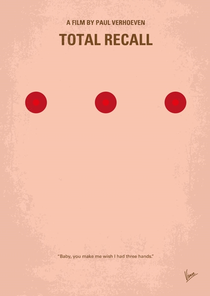 "No097 Celkem svolávací akce" poster od Chungkong Art. Minimalistický plakát filmu Total Recall přináší čistou, téměř hypnotickou estetiku. Tři výrazné červené tečky na jemném růžovém pozadí vyvolávají pocit futuristického kódu nebo tajemného signálu. Tenhle kousek není jen o designu – citát „Baby, you make me wish I had three hands.“ dodává šmrnc a naráží na kultovní momenty filmu. Perfektní volba pro fanoušky sci-fi a milovníky originálního filmového umění.