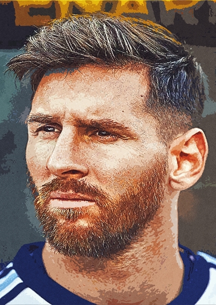 "Lionel Messi" poster od Muh Fahrul. Detailní portrét Lionela Messiho zachycuje jeho soustředěný výraz s jemnou drsností, která odráží tvrdou cestu od argentinských ulic až po fotbalové stadiony světa. Barvy a textury dávají pocit živosti a energie, jako by se legenda z Barcelony a Inter Miami právě chystala na další gól. Ten pohled – víc než jen sportovec, spíš ikona s příběhem. Pro fanoušky, co chtějí mít kus fotbalové historie doma.