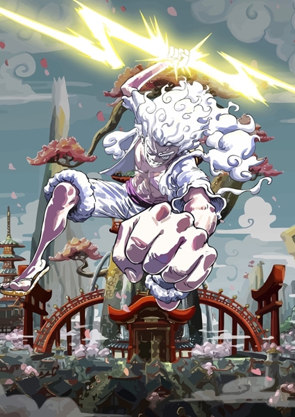 "luffy ozubené kolo 5" poster od Reva Budiana. Explozivní ilustrace Luffyho v jeho ikonické Gear 5 formě, kde každý tah štětce vibruje energií a rozhodností. Postava je zachycena v dynamickém skoku, připravená udeřit bleskovým úderem, zatímco okolní japonská architektura a kvetoucí sakury přidávají celé scéně atmosféru mystiky a dobrodružství. Tenhle kousek není jen dekorace – je to pozvánka do světa, kde fantazie nezná hranic. Pro fanoušky One Piece jasná volba na stěnu.