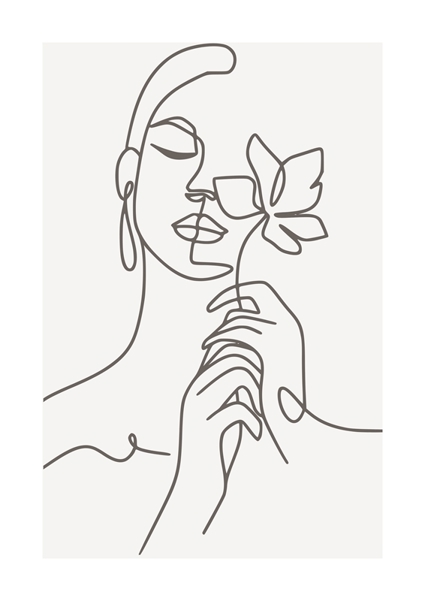 "Milovník přírody" poster od Jubi . Elegantní jednoduchost v čisté linii – žena s květem, který drží tak lehce, že to skoro cítíte. Minimalismus, který nešetří emocemi. Béžové pozadí dává prostoru dýchat, jemnost kontrastuje s výrazem. Nature Lover není jen obraz, je to moment, kdy příroda a ženskost splývají v jeden tichý příběh. Ideální pro ty, kdo milují umění bez zbytečností, ale s hlubokým nádechem. Takový ten typ, co vám hned sedne na zeď a už nepustí.