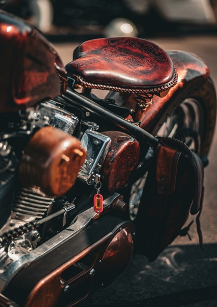 "Kolo " poster od Sebastian Frick. Hnědý kožený sedák na motorce, který vypadá jako z jiné doby. Kov se leskne a kontrastuje s teplými tóny sedla a nádrže, jako kdyby každá šroubka měla svůj příběh. Tenhle stroj není jen dopravní prostředek, je to kus umění – drsný, autentický a s výrazem, který křičí „vyraž ven a zažij to“. Pro fanoušky vintage stylu a svobody na dvou kolech.