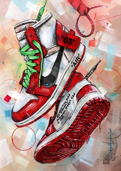 "Nike air jordan 1 Off-White Chicago painting. Unique sneaker art for the real sneakerhead. All prints are reproductions of my original paintings. Original painting is sold."
