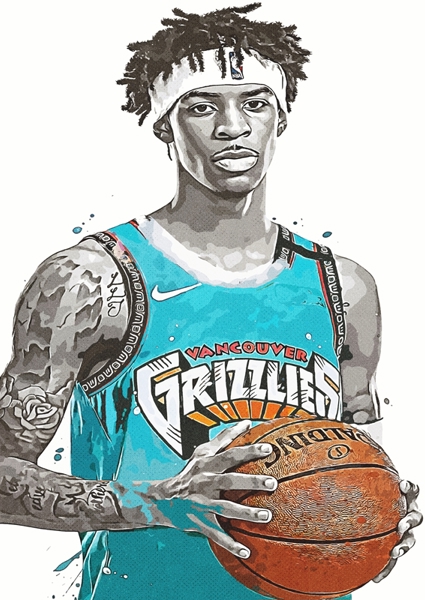 "Už Morant" poster od MyArtica. Tahle ilustrace Ja Moranta fakt nebere prach. Ten jeho pohled, co říká „Jsem tady a hraju to naplno“, je přímo nakažlivý. V kultovním dresu Vancouver Grizzlies září modrá barva, která hned přitáhne oko a připomene začátky legendy. Detaily na rukávu a míči dodávají celku šmrnc, jak kdyby byl připraven vyrazit rovnou na palubovku. Moderní grafika, co nezapadne v žádném sportovním koutě ani art kolekci. Prostě kousek, co musíš mít, když jsi fanoušek basketu i cool designu.