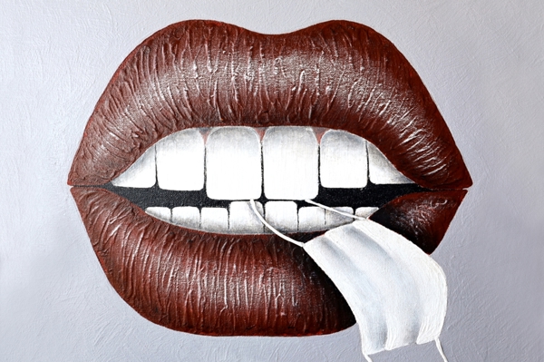 "The Corona time... The lips with masks – a humorous commentary on social hysteria. It is a living reminder of human irrationality and brings a piece of contemporary history with a wink."