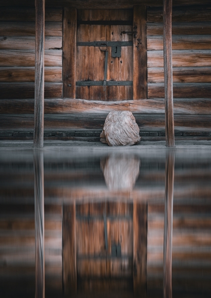 " A detail from a "Fäbod" in Mora. I took this picture in the summer of 2023 when there were major floods in Mora, among other places. Was inspired by the high water level and how motifs that were not possible emerged."