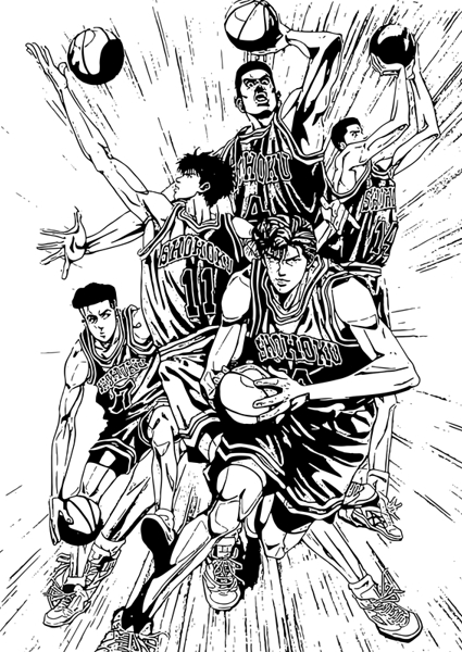 "Slam Dunk Manga umění" poster od JULLIA 86. Energie a rychlost přímo z palubovky v čisté černobílé manga podobě. Pět hráčů, každý s jiným stylem a tahy, jakoby právě vyběhli z komiksové stránky, kde se napětí a soutěžení míchají do jednoho dynamického mixu. Tenhle obraz není jen o basketu – je to akční jízda, která chytne každého fanouška anime i sportu. Slam Dunk tu ožívá v každé čáře a pohybu.