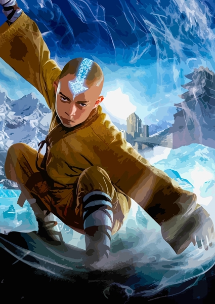 "Avatar: Poslední vládce větru" poster od LAKEESHA 082. Aang, poslední vzdušný mistr, je zachycen v momentu maximální koncentrace a síly. Jeho ikonická modrá tetování září, zatímco ovládá vířící proudy vzduchu kolem sebe. Dynamické pozadí s ledovými horami a tajemnou pevností podtrhuje dobrodružnou atmosféru světa Avatar. Tohle není jen obrázek – je to pozvánka do světa magie a hrdinství, kde elementy tančí pod jeho velením. Skvělý kousek pro fanoušky fantasy s grácií a energií.