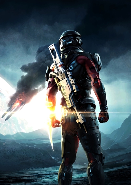 "Planoucí válečník" poster od nanajume. Elektrizující digitální umění zachycuje válečníka v futuristické zbroji, který čelí chaosu na bitevním poli daleké galaxie. Postava drží vyspělé zbraně a stojí pevně proti zlověstnému nebi, kde hoří trosky padajícího plavidla. Temná krajina a vzdálené exploze vytvářejí napětí typické pro sci-fi RPG svět Mass Effectu. Ideální kousek pro fanoušky vesmírných dobrodružství, kteří hledají dávku adrenalinu a epického příběhu.