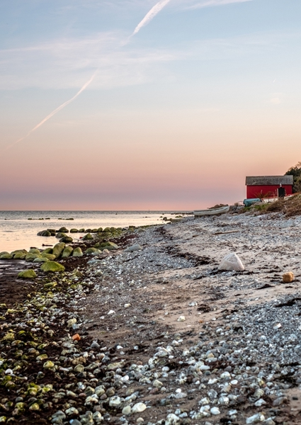 "Umístění lůžkovin" poster od Tobias Grönberg. Klidná večerní chvíle u moře v Beddinge Läge. Oblázková pláž pomalu pohlcuje poslední paprsky slunce, zatímco nebe se mění z modré do jemných pastelových tónů. Červená loděnice na břehu jako tichý svědek letních vzpomínek, které tu šeptají vítr. To není jen fotka – je to moment, kdy se den a noc potkávají a říkají si „tak co, příště zase tady?“ Ideální doplněk pro ty, kdo chtějí mít kousek klidu přírody pořád na očích.