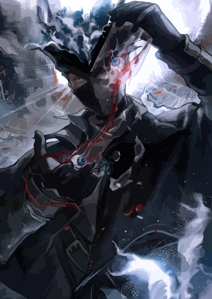 "Krvepronesený" poster od Sheshh. Temná postava zahalená do stínů odhaluje tajemství krvavých nití, které spojují realitu s neznámým světem plným napětí a dobrodružství. Tento obraz pulzuje energií herní kultury a propojuje ji s výraznou paletou chladných a kontrastních barev. Perfektní volba pro každého, kdo hledá v interiéru výrazný a mysteriózní prvek s nádechem japonské estetiky a futuristického thrilleru.