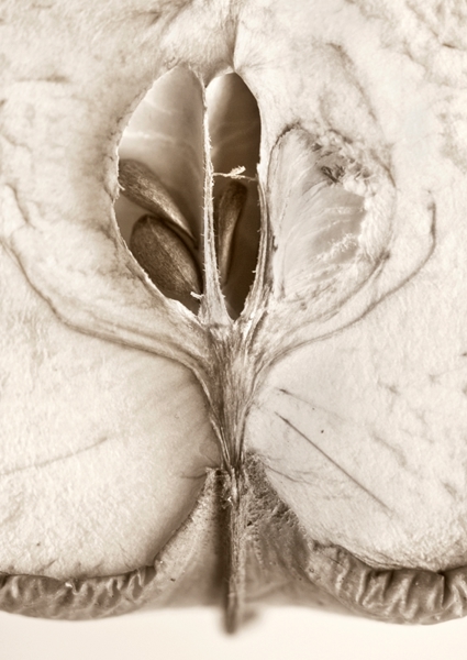 "From the series "A week later", that I started after having found half an apple at home that had been forgotten in roomtemperature. The surface where ut was cut had gotten a velvety quality. I started photographing different fruits and vegetables that I kept in room temperature."