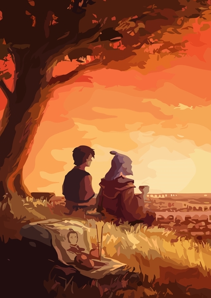 "Avatar" poster od ndobleh 11. Dva siluety sedí vedle sebe pod mohutným stromem, zatímco obloha hoří teplými odstíny oranžové a zlaté. Vzduch díky tomu dýchá klidem a jemnou nostalgií, která nenechá nikoho chladným. V pozadí se rozprostírá rozlehlá krajina, která evokuje dobrodružství a nekonečné možnosti. Tenhle obraz je jako momentka z legendárního světa Avatar – přesně ten pocit, kdy se zastaví čas a všechno kolem má smysl. Skvělé pro každého, kdo miluje fantasy, anime a trochu té magické atmosféry.