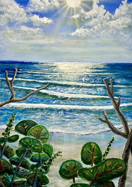 "Odrazy" poster od Dan Abrahamsson. Slunce hází zlatavé paprsky na vlny, které se blyští jako zrcadlo – a ta hra světla je prostě magická. Voda se mihotá, jakoby chtěla říct „hele, tady je život“. V popředí zelené listy a suché větve, co rámují tenhle moment klidu a nekonečna. Obloha je rozfoukaná bílými mraky, které jen tak líně plují. Reflections skutečně chytají ten pocit dokonalého dne u moře – trochu jako když si představíš, že můžeš všechno nechat za sebou a jen být.