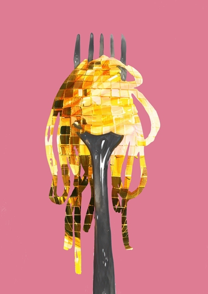 "Spaghetti as Disco Ball Fork Mosaic Painting Kitchen"