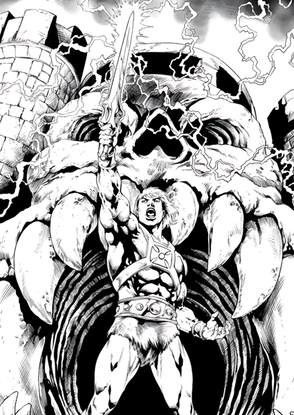 "Barbar Conan" poster od Gorosei Artwork. Surový Conan se tu tyčí s mečem vztyčeným k nebi, jakoby chtěl rozseknout nejen vzduch, ale i osud. Za ním se tyčí hrozivá pevnost připomínající lebku s tesáky – jasný symbol temnoty a výzev, které čekají uvnitř. Černobílá kresba hraje s kontrasty jako s divokými bestiemi, takže celé dílo působí jako výbuch adrenalinu a dobrodružství starých fantasy příběhů. Pro fanoušky mečů, magie a pořádné dávky epiky je tahle ilustrace jasná volba.