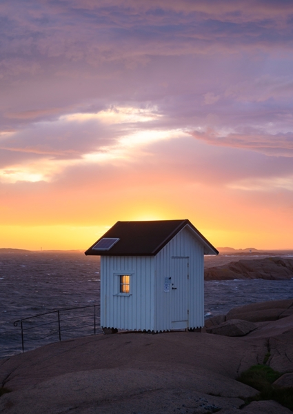 "The old lighthouse at Stångehuvud in Lysekil, Sweden, at sunset."