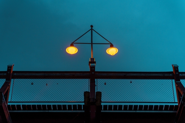 "This bridge crosses the Isar in Munich. It's very busy here on a beautiful summer evening. I found the motif and the colour contrast of the lamps against the sky very appealing and took this photo."