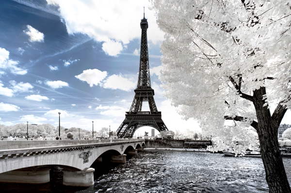 "“Another Look” collection transforms iconic Paris landmarks Eiffel Tower, Le Louvre, the Seine into surreal dreamscapes. Infrared photography reveals glowing white foliage, dramatic skies, and a mystical atmosphere, offering a fresh, artistic view of the City of Light. "